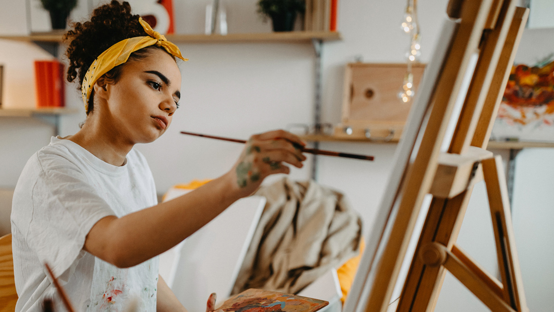 The first thing you’ll do in this course is learn about the basic building blocks of art. These are known as the elements of art and the principles of design. Once you know what these are and how they work together, you’ll be able to analyze the work of other artists and use the elements and principles while making your own artwork.